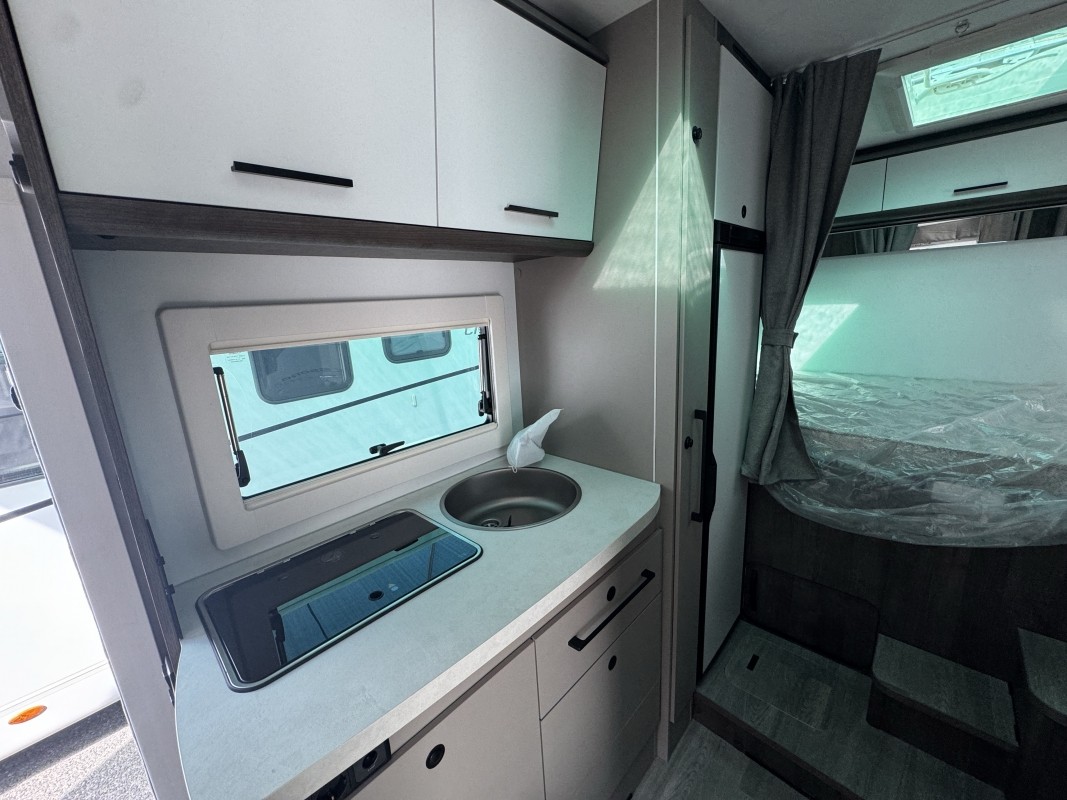 Equipada sobre chasis Ford Transit 2.0 TDCi de 165 CV, combina potencia, diseño y confort premium, ofreciendo una experiencia de viaje única tanto para parejas como para familias exigentes.