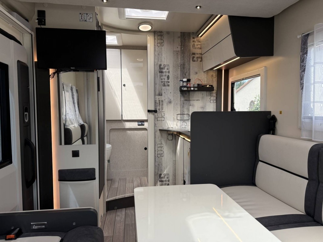 Se vende autocaravana McLouis MC4 Slim 337, equipada con motor Ford 2.0 L de 165 CV, cambio automático (Pack Matic) y el completo Pack Slim que incluye acabados premium, panel solar 200 W, techo panorámico (SkyRoof) y más. Diseño compacto — longitud 6,39 m, anchura 2,15 m — para gran maniobrabilidad sin renunciar a espacio interior. Ideal para 4 plazas, con cama de pavillón eléctrica y dinette amplia. Lista para empezar a viajar con máximo confort desde el primer momento.