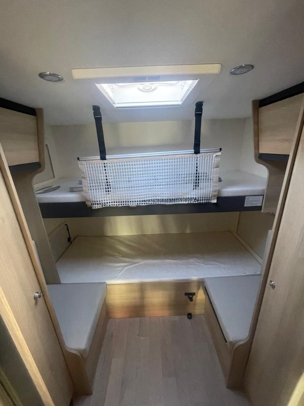 Camas traseras tipo litera: Dos camas de matrimonio amplias y cómodas, ideales para descansar después de un día de exploración. Perfectas para parejas o familiares que viajan juntos.